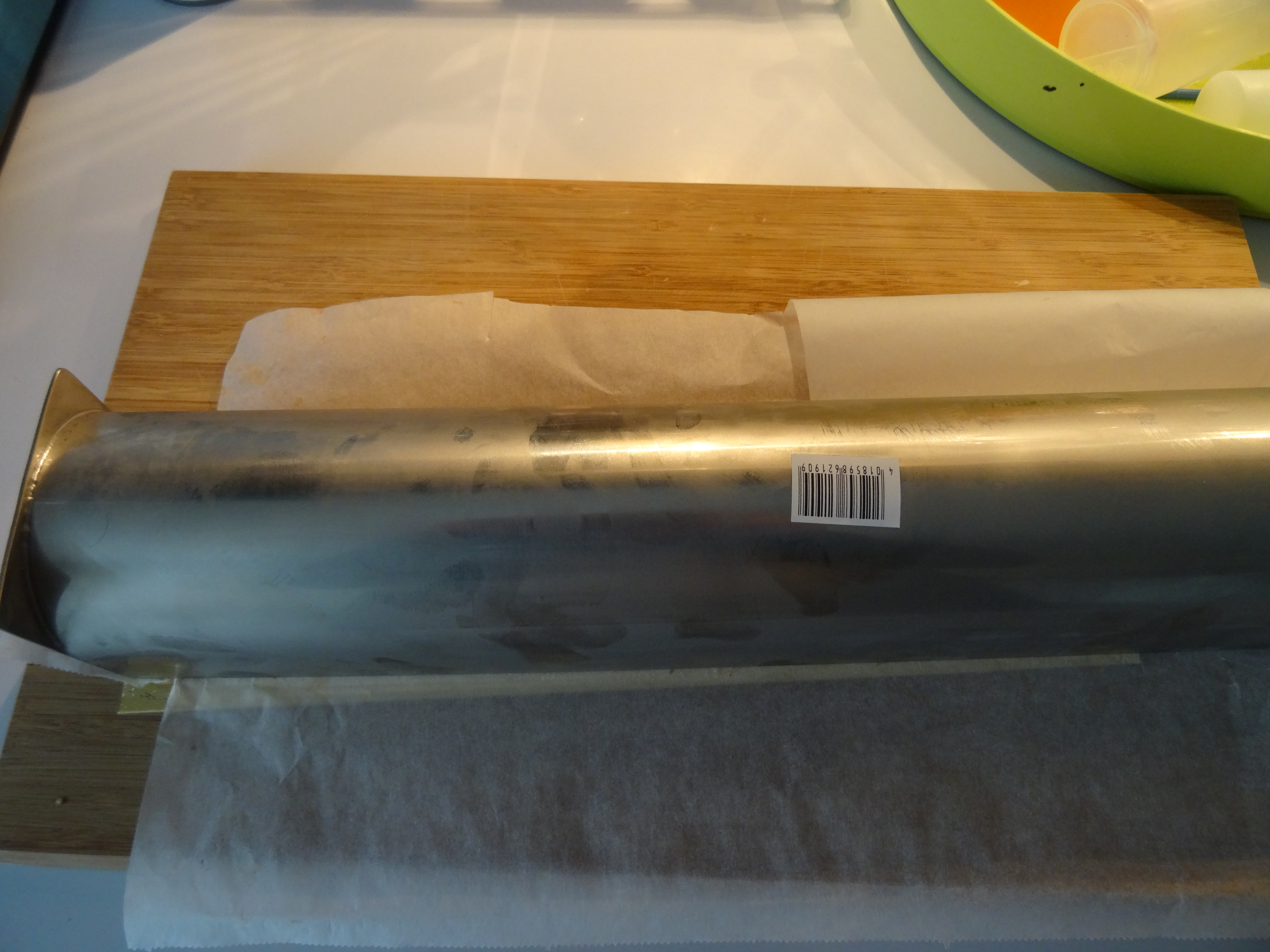 - Chemisez un moule à bûche de papier film Si vous n’avez pas de gouttière à bûche roulez la génoise sur elle même (sans le torchon) en serrant bien.Chemisez ensuite de biscuit taillé aux dimensions du moule à bûche coté décoré contre le film