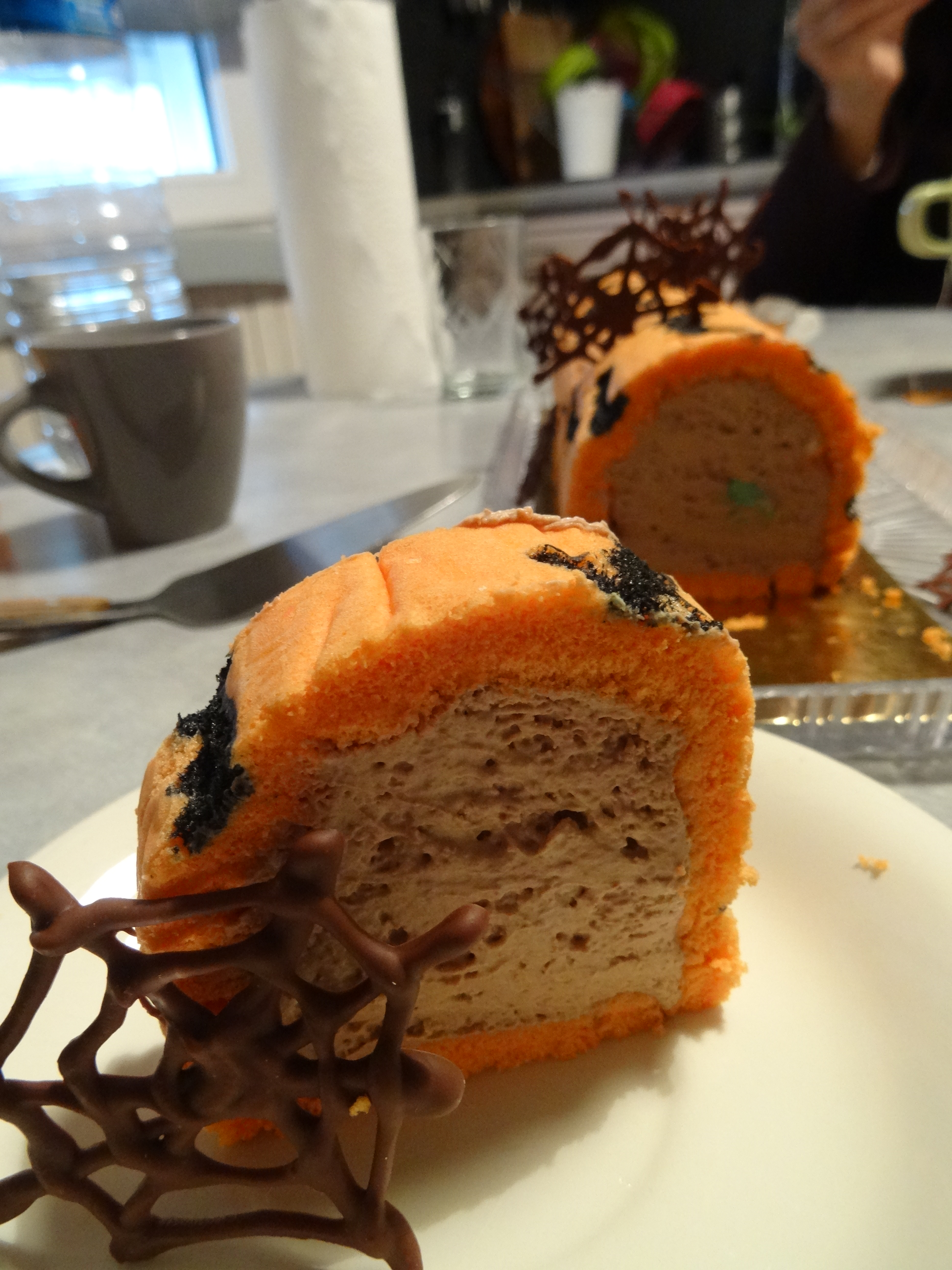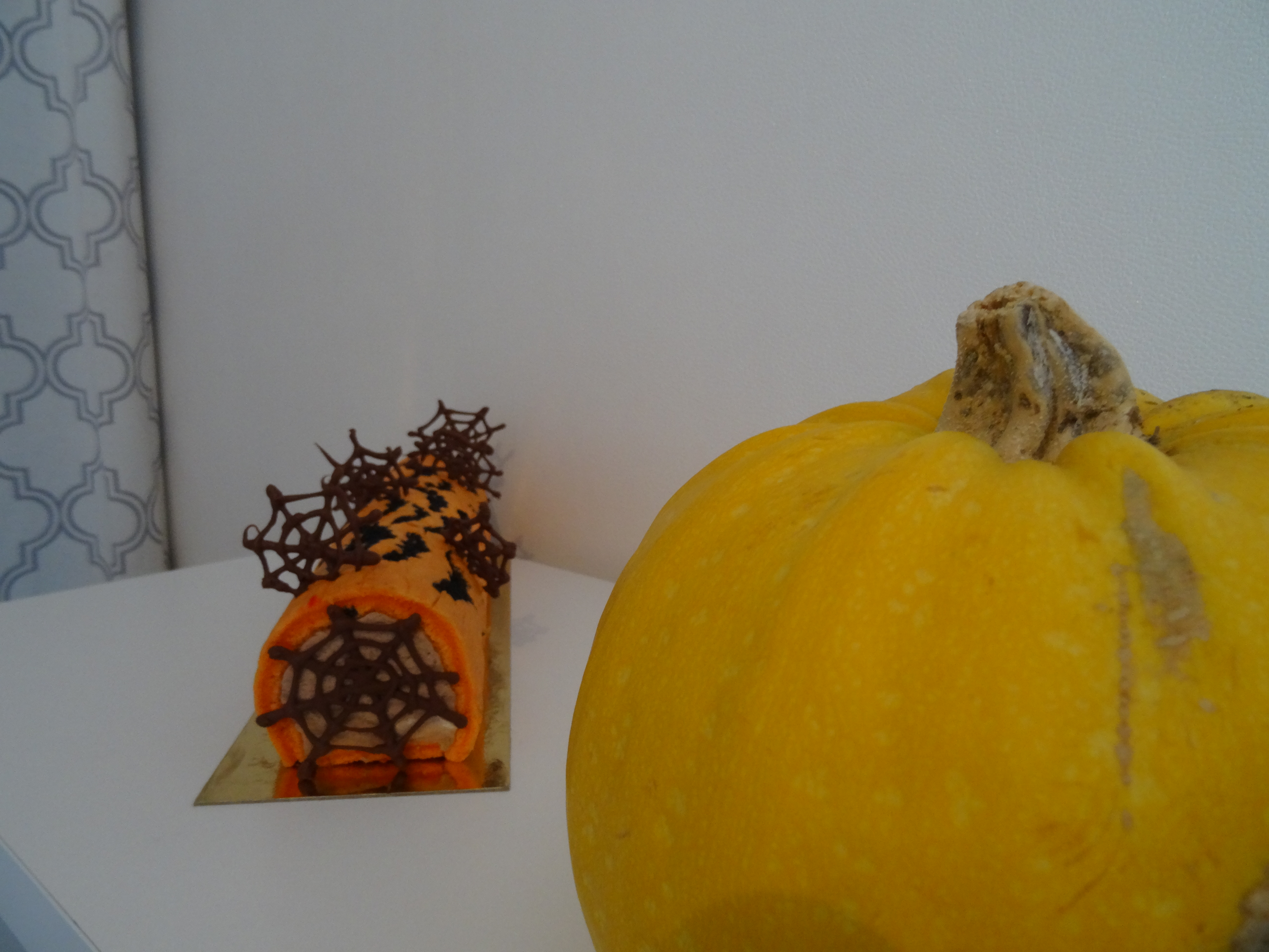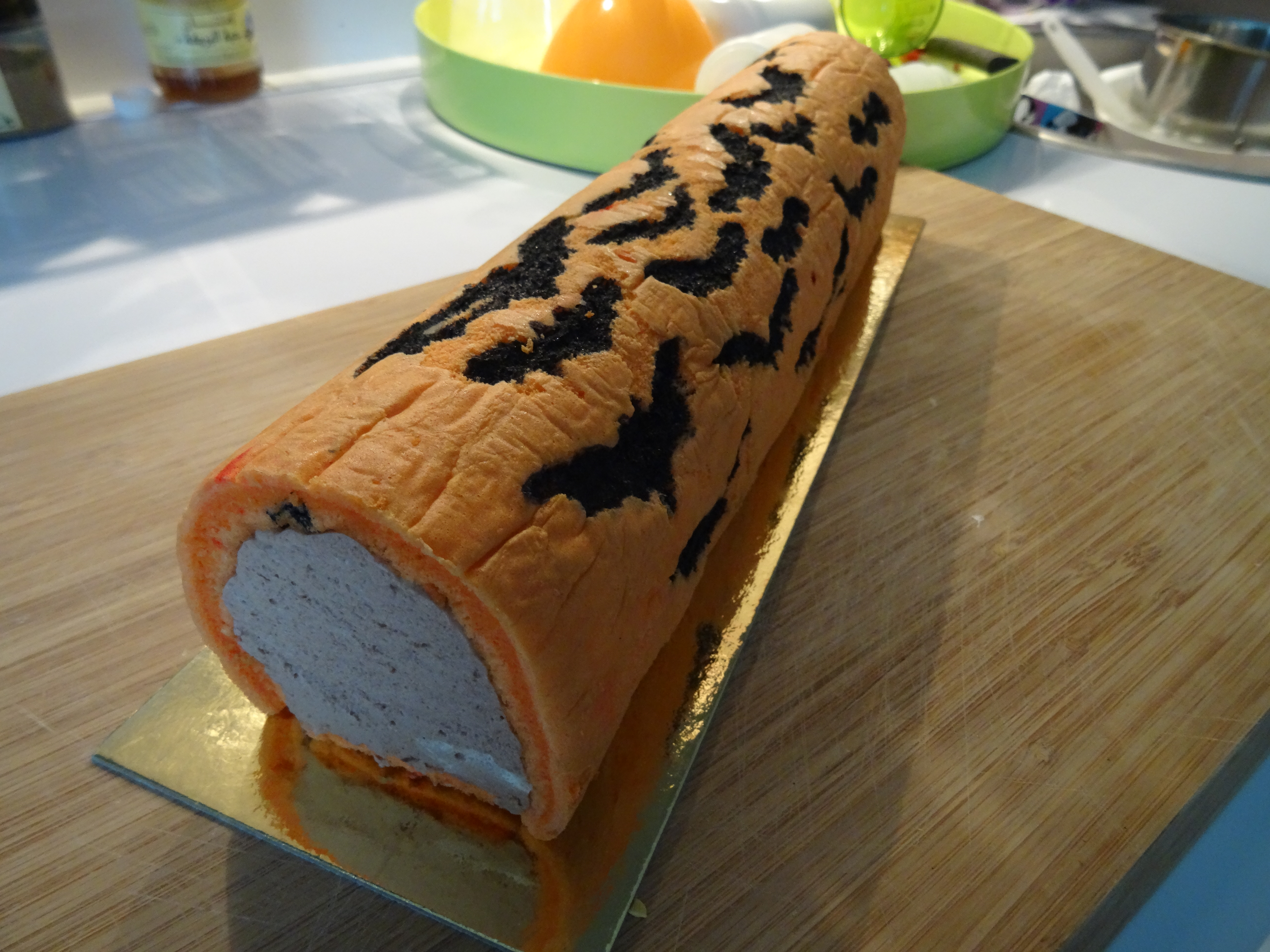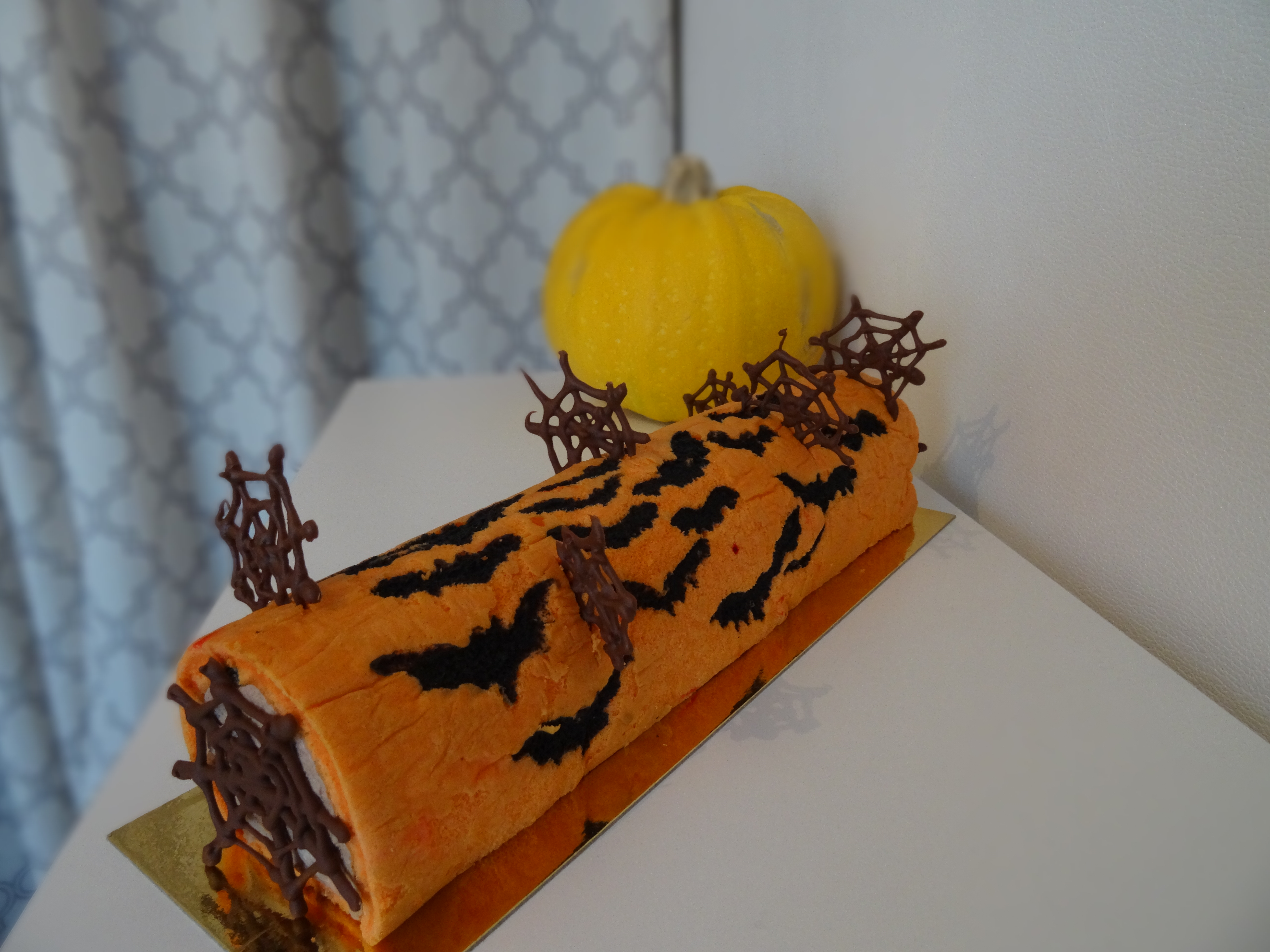 Coucou à tous ! aujourd’hui je reviens vers vous avec une recette et un tuto complet pour épater vos chers têtes blondes pour Halloween. Un roulé fourré d’une délicieuse mousse choco-caramel aux couleurs d’halloween. Pour encore plus de gourmandise j’ai ajouté des M&M’s ! J’avais déjà essayé plusieurs roulés décorés et j’adore réaliser ces petites douceurs. Je vous avez déjà proposé la technique de la reine de roulés : Junko . Lors de ma précédente tentative j’avais zappé une étape parce que je n’y croyais pas trop mais aujourd’hui j’ai suivi sa technique dans les règles de l’art et tout a fonctionné à merveille !