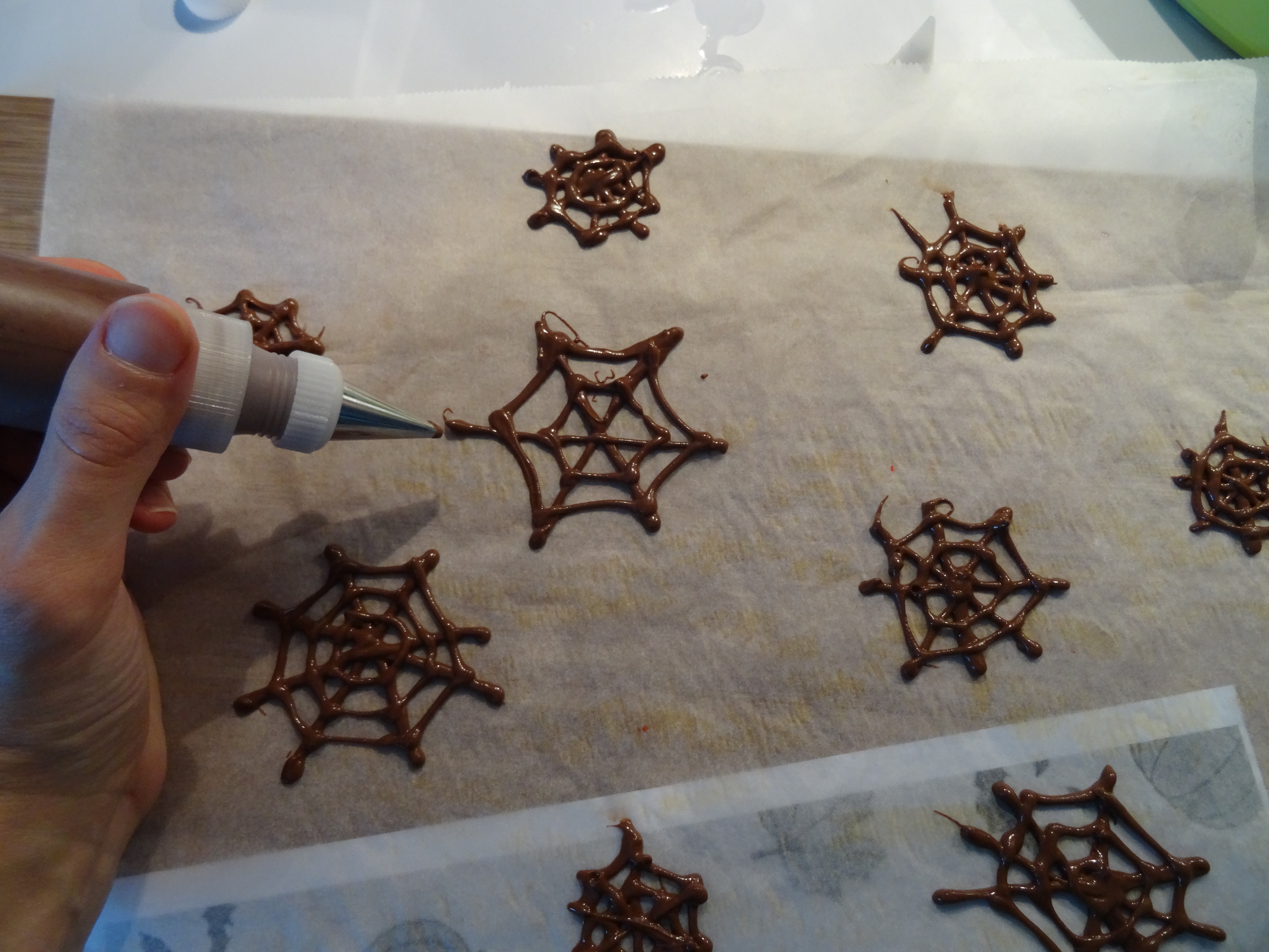 - Décorez comme bon vous semble. Pour ma part j’ai fait fondre du chocolat et j’ai dessiné des toiles d’araignée